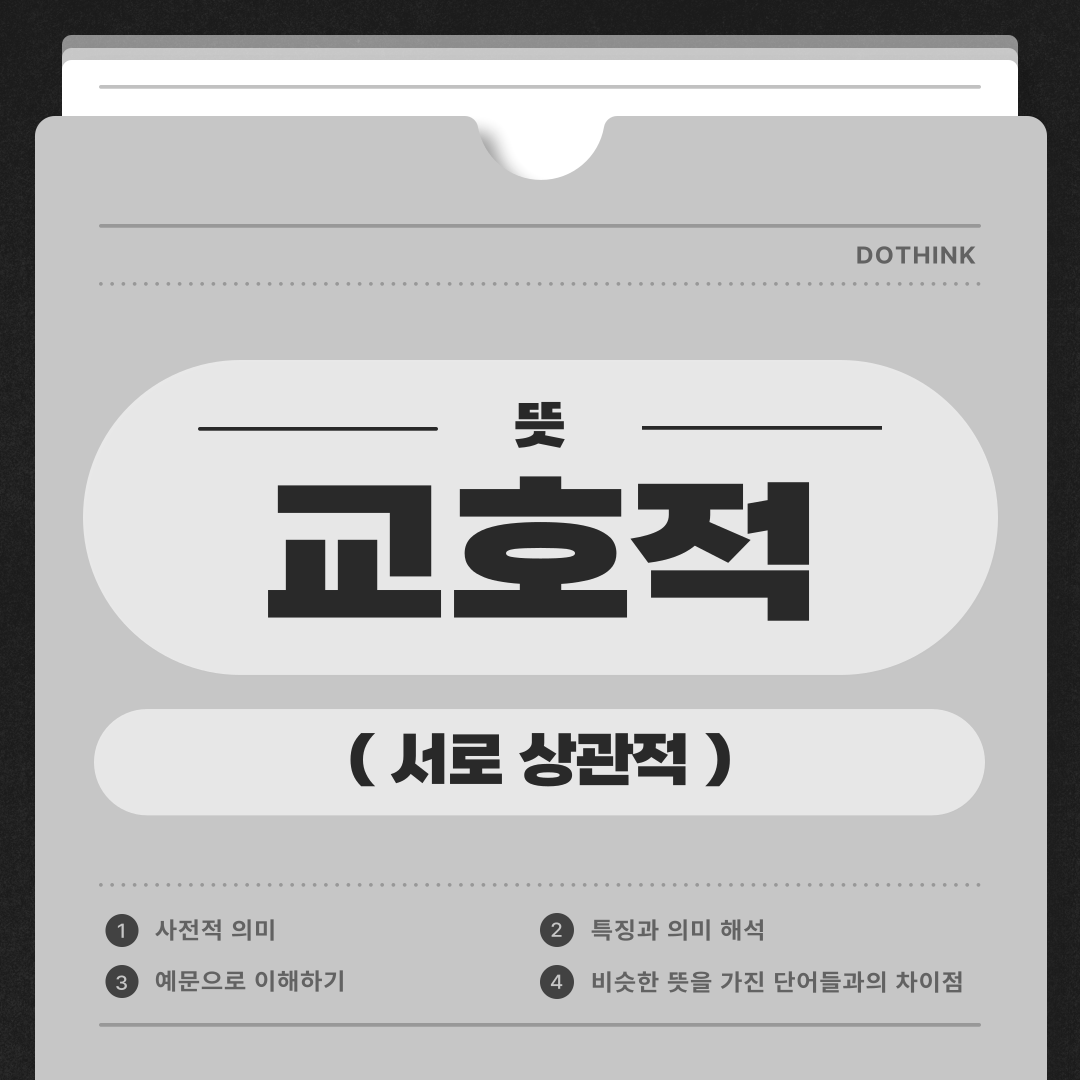 글을 읽다 보면 가끔 낯선 단어가 등장해 멈칫할 때가 있습니다. 그 중 하나가 바로 ‘교호적’이라는 단어인데요. 책을 읽다가 ‘교호적’이라는 단어를 마주했는데, 처음에 무슨 뜻인지 잘 이해가 안 가더라구요.