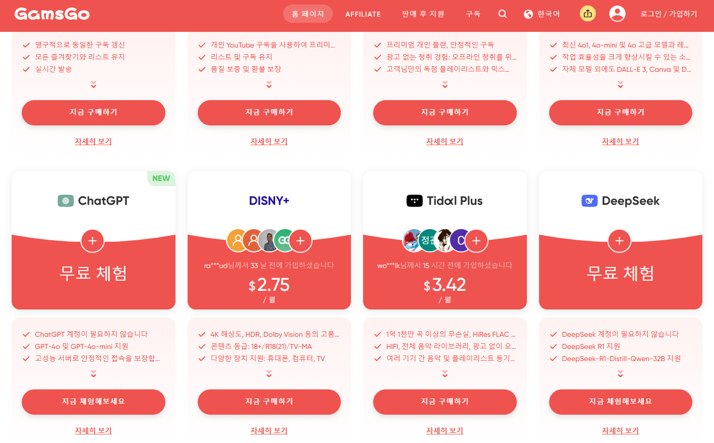 같은 디즈니플러스라면, 더 저렴하게 구독할 수 있는 방법을 선택하는 게 현명하겠죠? 겜스고에서 이미 많은 분들이 합리적인 구독을 시작하고 있습니다. 이제 당신 차례입니다.
