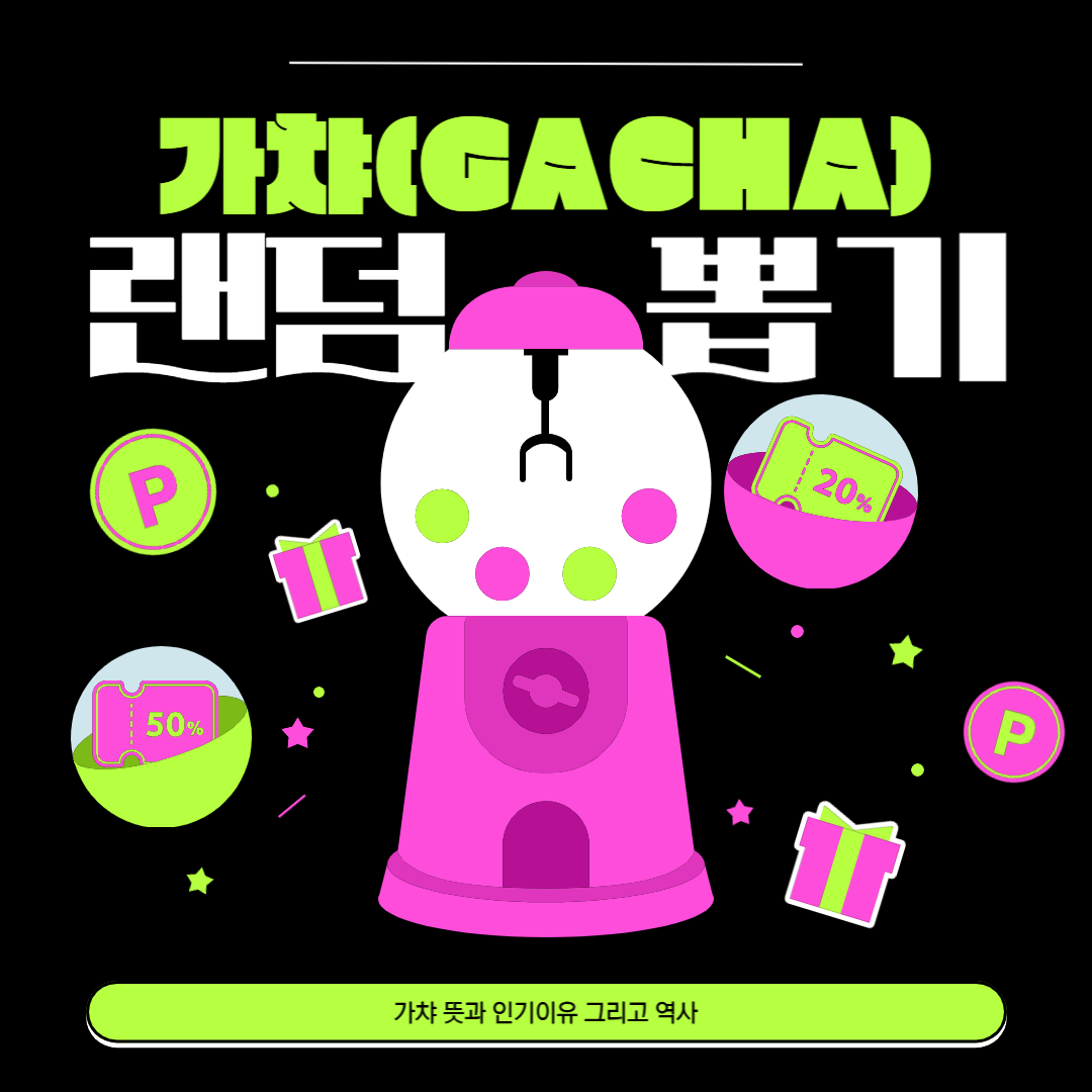 '가챠(Gacha)'는 원래 일본에서 시작된 단어예요. 동전을 넣고 손잡이를 돌리면 장난감이 나오는 기계에서 돌리는 소리 '가샤(ガシャ)'와 튀어나오는 소리 '폰(ポン)'을 합쳐 '가샤폰(ガシャポン)'이라는 이름이 생겼고, 이걸 축약한 표현이 바로 가챠입니다.