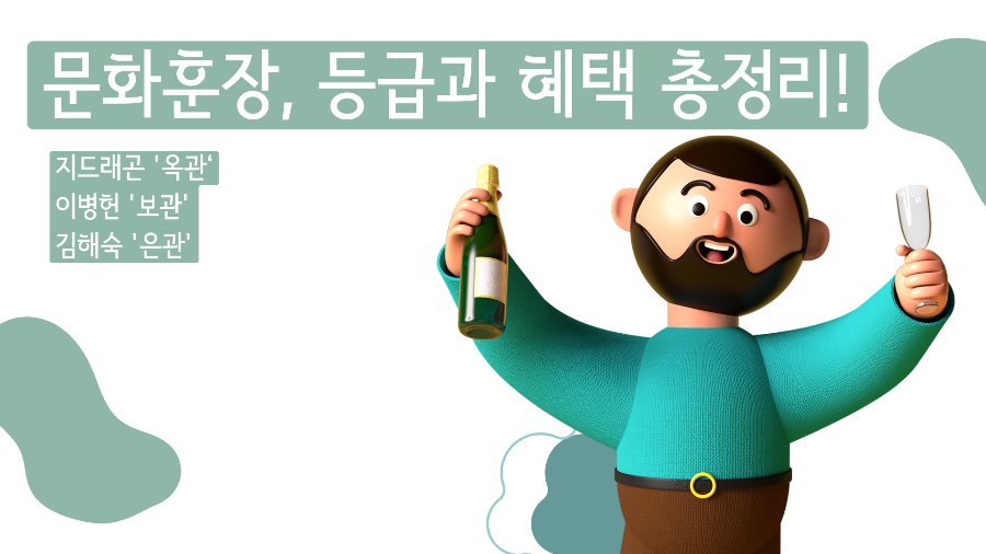 그래서 오늘은 저와 같은 궁금증을 가지셨을 분들을 위해 '문화훈장'의 등급 차이와 수훈 시 혜택에 대해 확실하게 파헤쳐 보겠습니다!